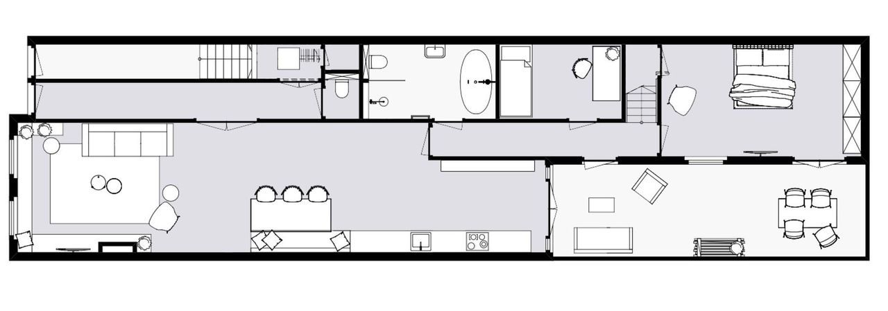 Om de hoek van de Frederik Hendriklaan in het Statenkwartier is een parterrewoning met achterbouw luxe gerenoveerd. De woning beschikt over drie slaapkamers en twee badkamers voorzien van mat zwarte inbouwkranen, badmeubels van solid surface en vloerverwarming.
